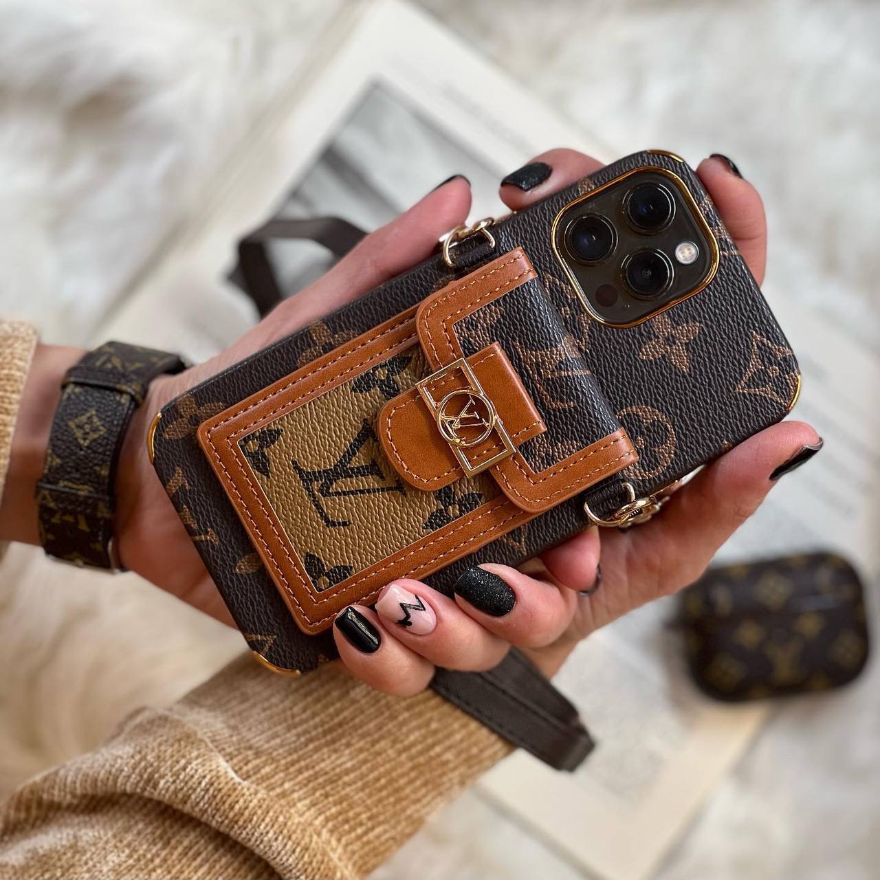 قاب موبایل آیفون لویی ویتون بگی جاکارتی ( جاکارتی قهوه ای ، جاکارتی مشکی )