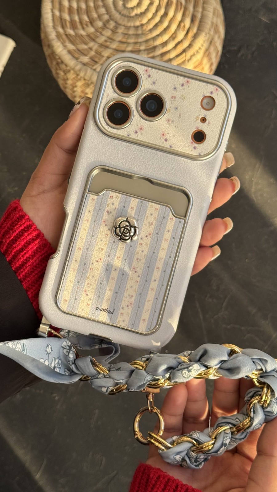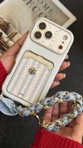 قاب موبایل آیفون اسکارف گل آبی مه آلود + بندست
