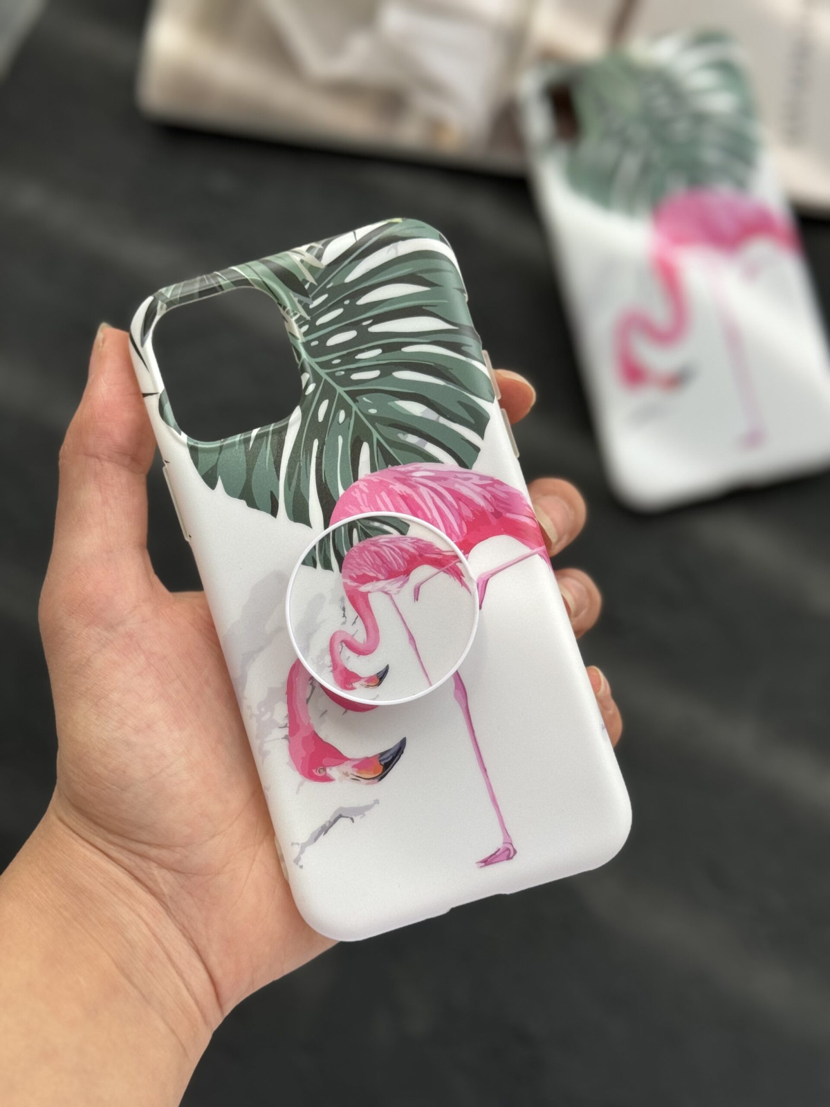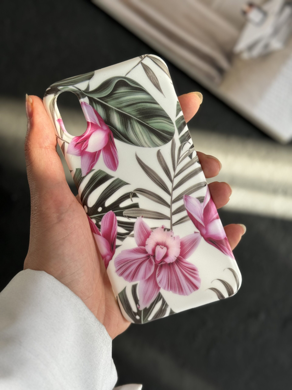 قاب موبایل آیفون بابونه پشت گلس + بند چرمی ست