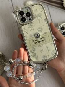 قاب موبایل آیفون باغ سلطنتی + بند ست مروارید