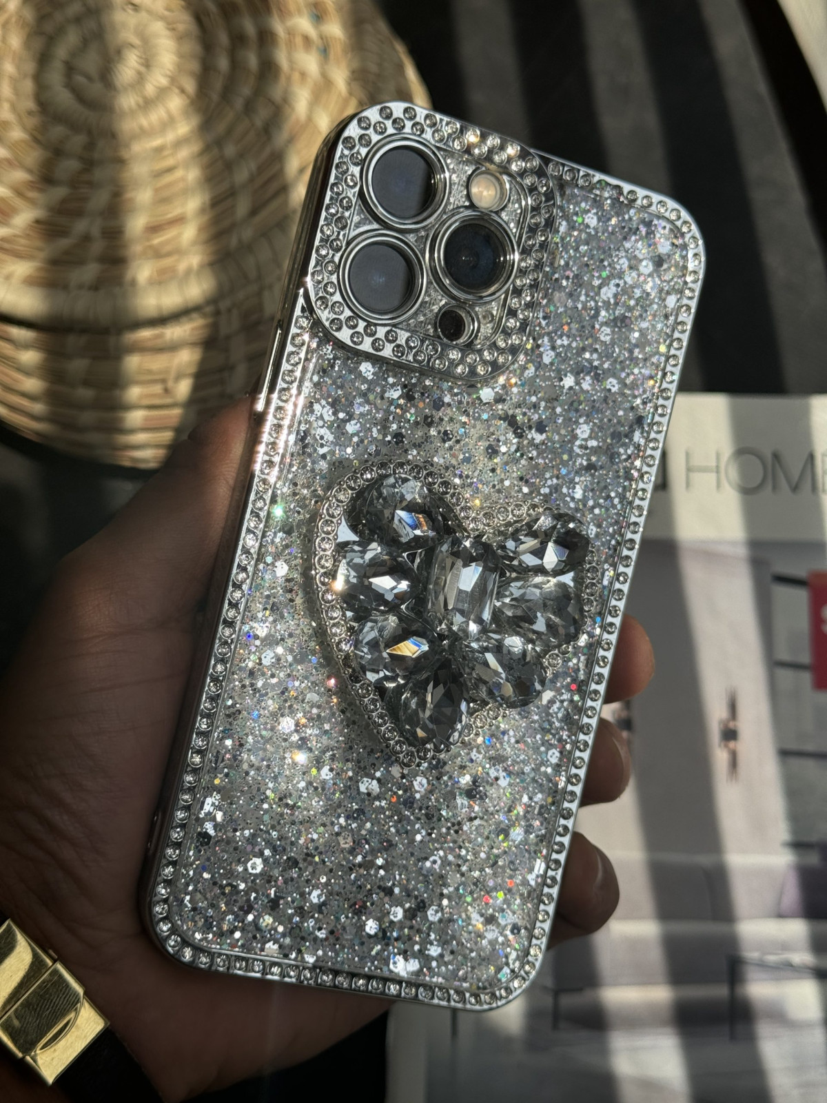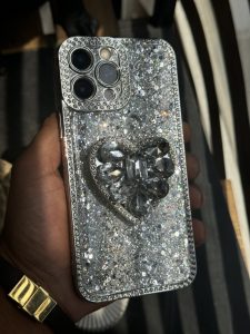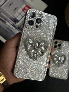 قاب موبایل آیفون بلینگی قلب پولکی دور نگین