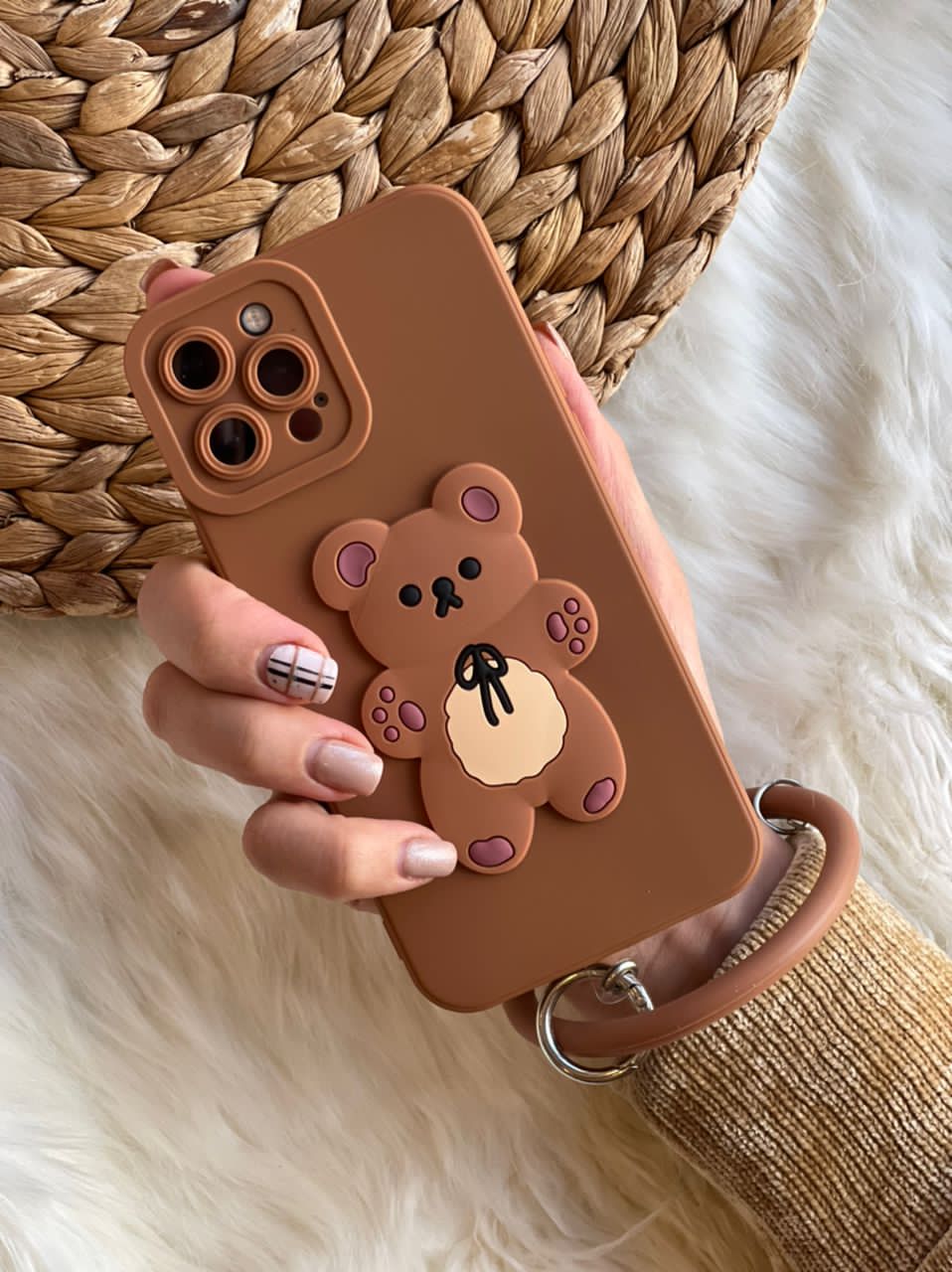قاب موبایل آیفون خرس برانچ قهوه ای سیلیکونی + حلقه ست