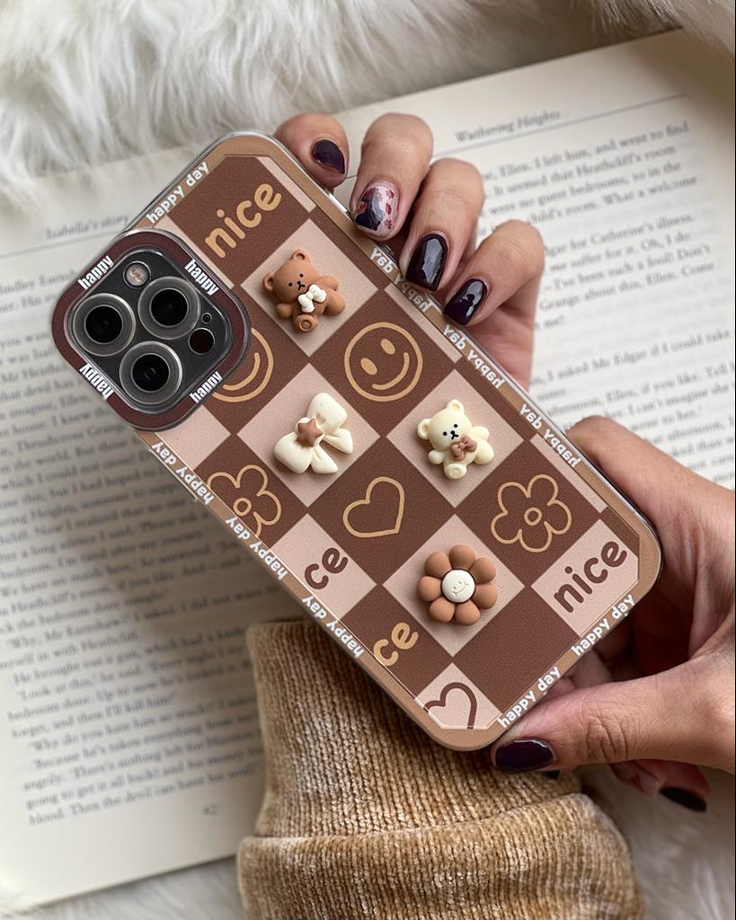 قاب موبایل آیفون خرس خوشحال برجسته محافظ لنزدار
