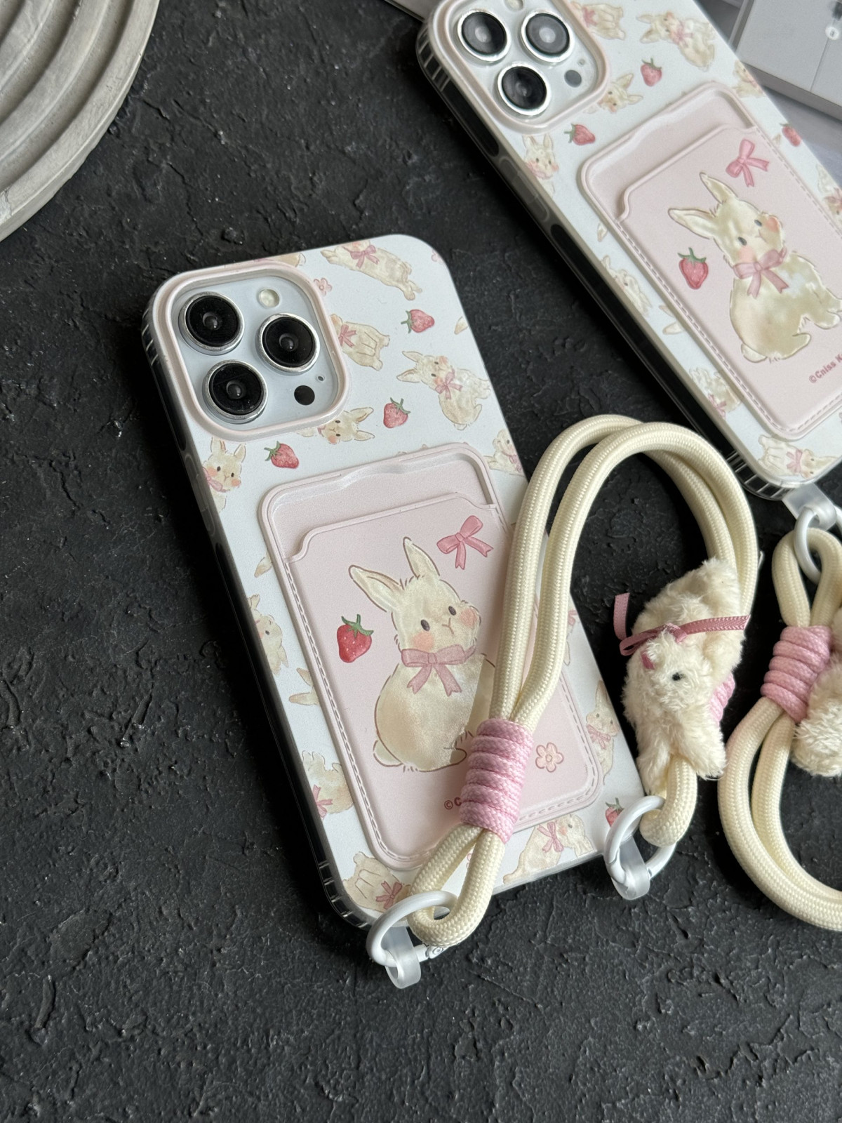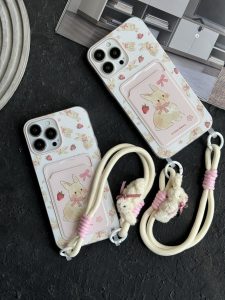 قاب موبایل آیفون خرگوش توت فرنگی پاپیون آویز و بند عروسکی
