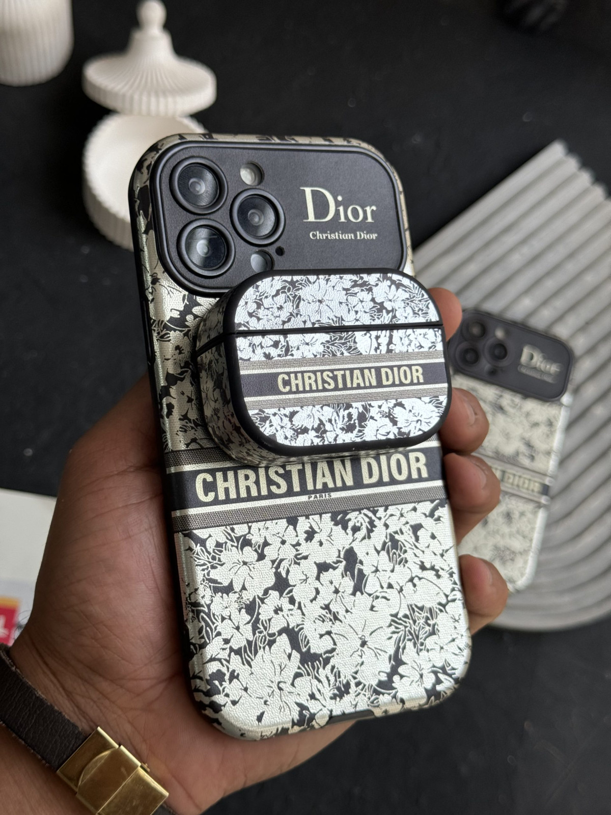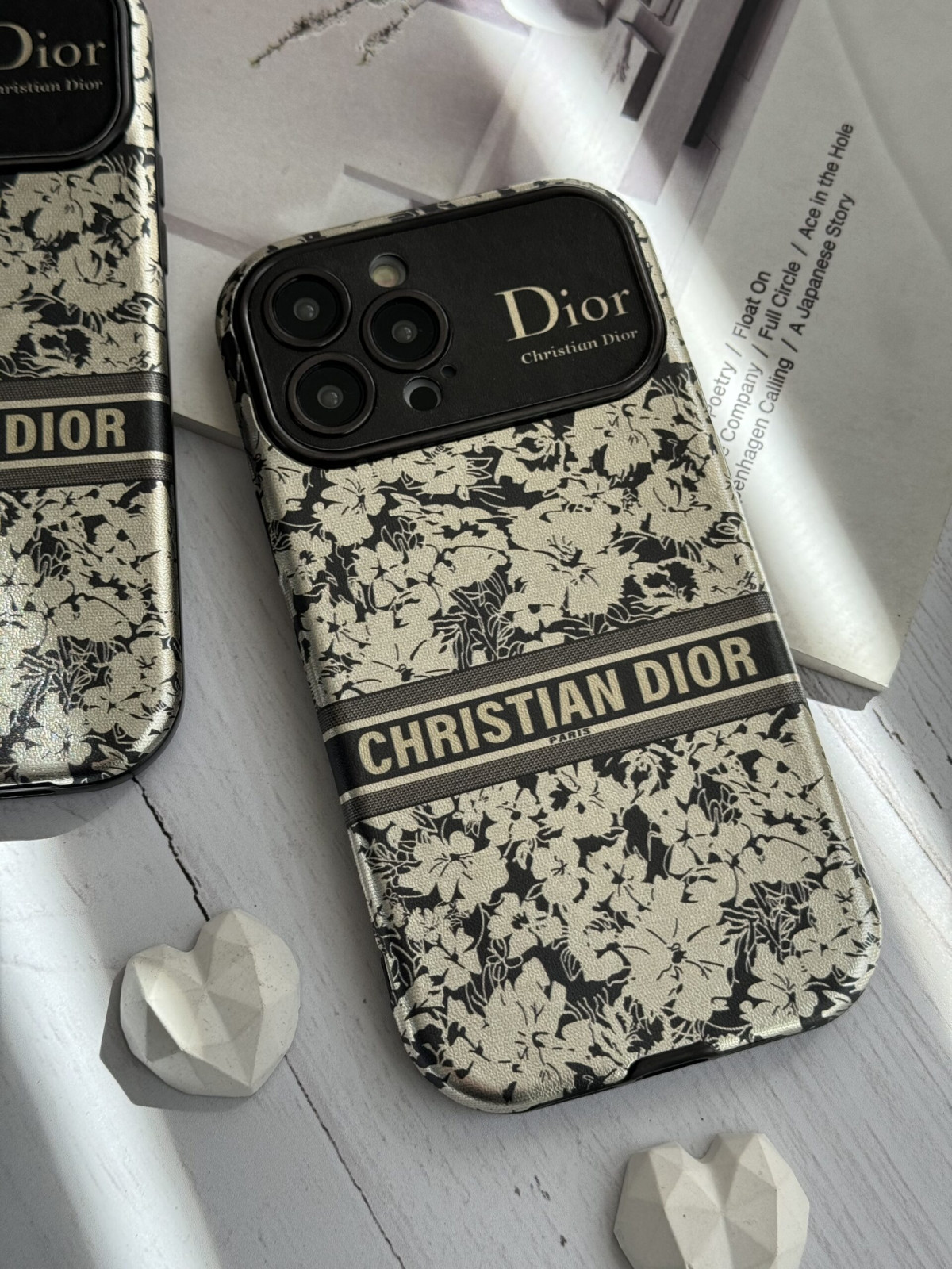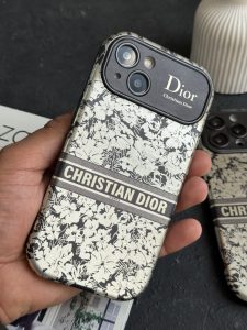 قاب موبایل آیفون دیور گلدار نقره ای محافظ لنزدار
