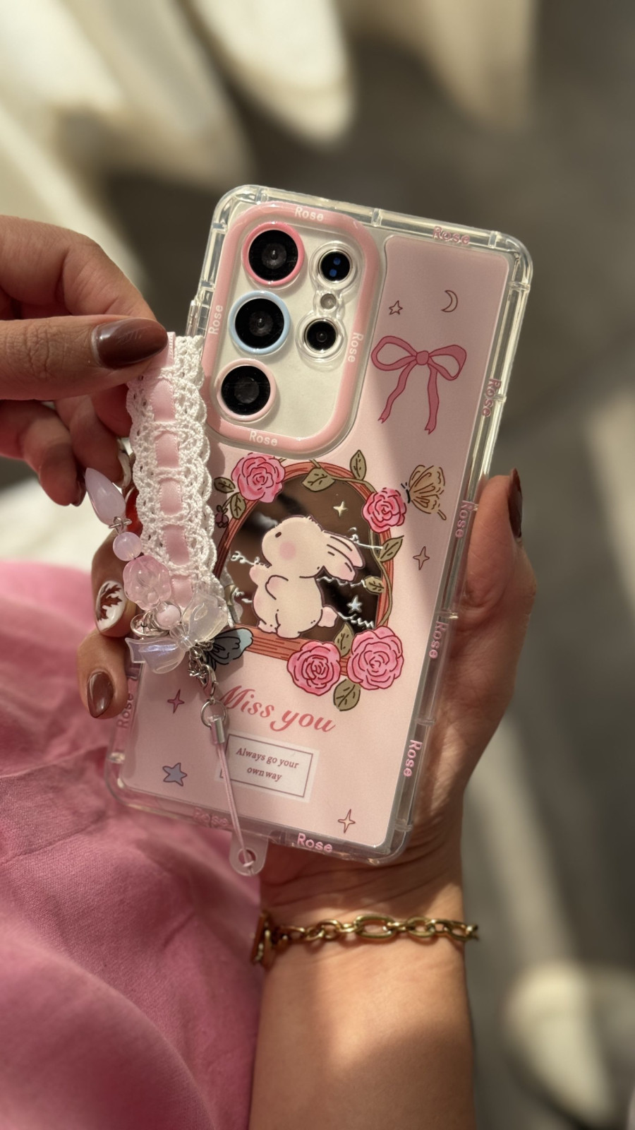 قاب موبایل ( آیفون – سامسونگ ) خرگوش میس یو پاپیون گل رز بندست