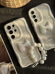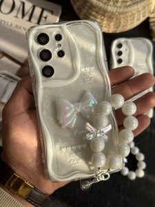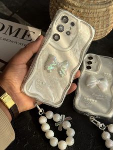 قاب موبایل ( آیفون – سامسونگ ) پاپیون هفت رنگ سفید صدفی + بندست