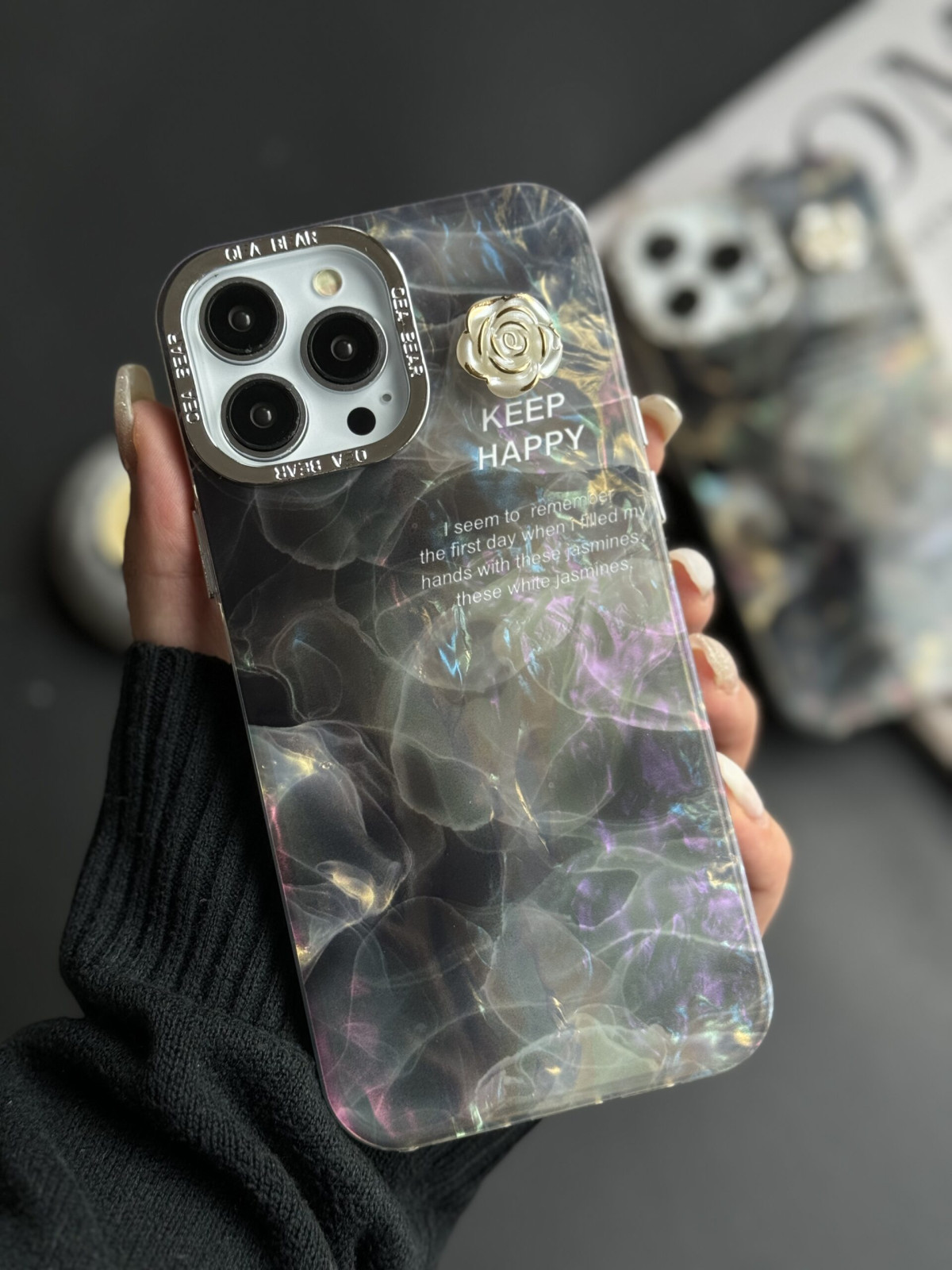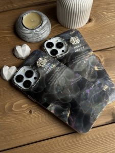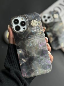 قاب موبایل آیفون سنگ ماربل دودی گل برجسته