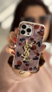 • قاب آیفون سن لورن با طرح گل سرخ و پروانه
