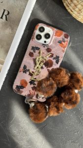 قاب موبایل آیفون سن لورن دم روباهی پروانه گل سرخ + بندست پشمی
