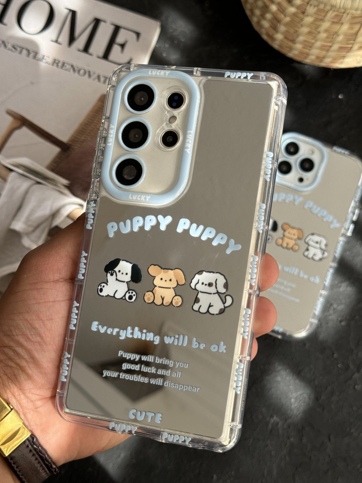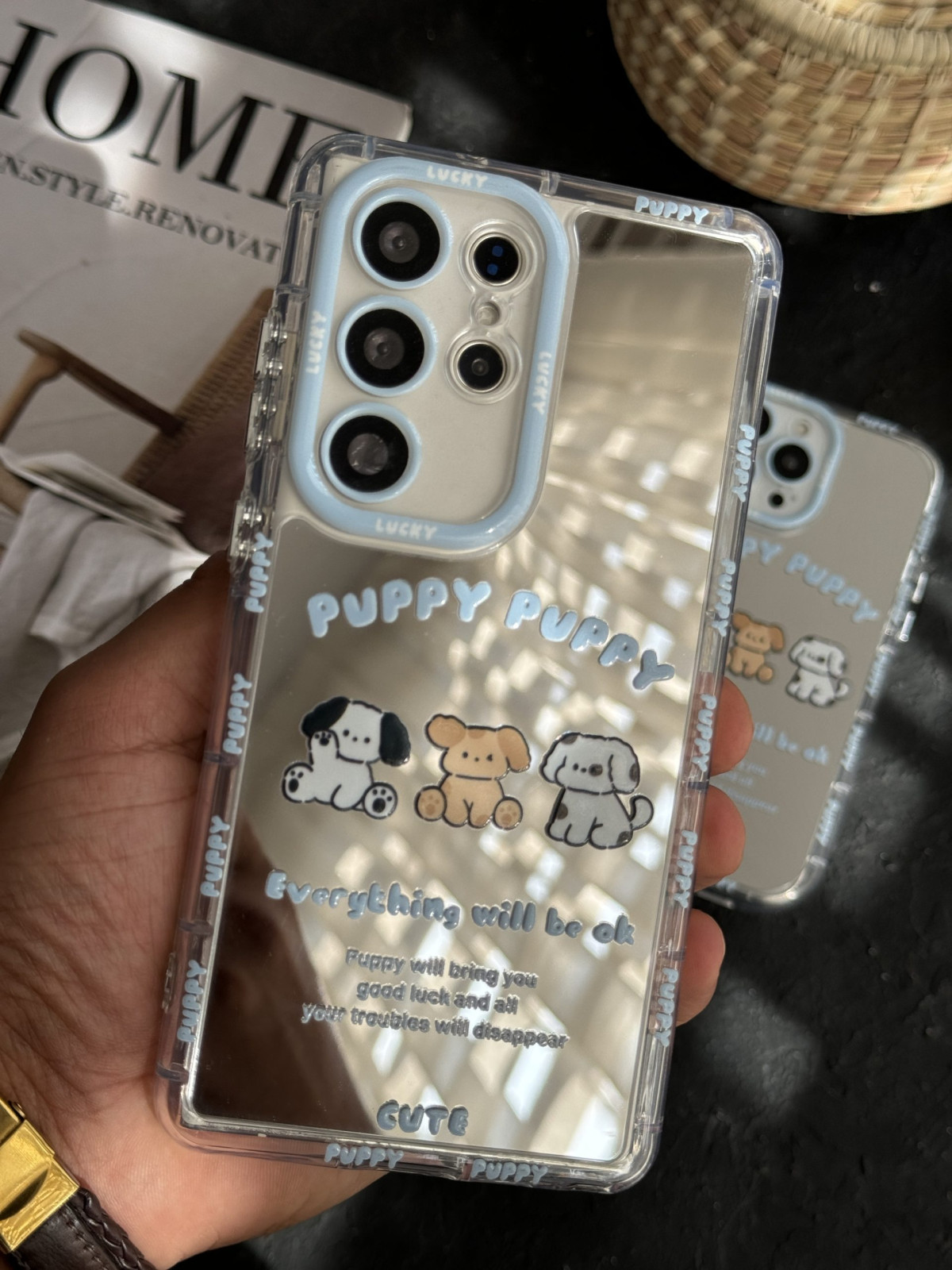 قاب موبایل سامسونگ سه سگ پاپی پاپی آیینه ای آبی