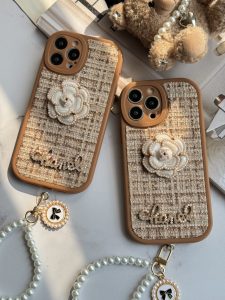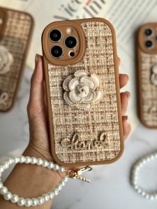 قاب موبایل آیفون شنل گل حصیری + بندست