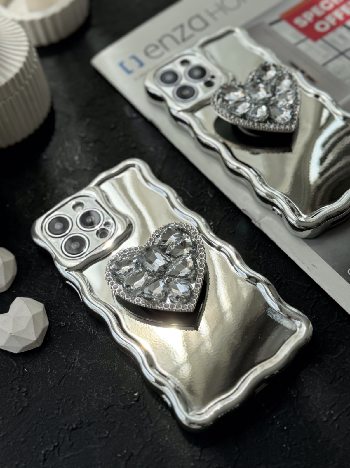 قاب موبایل آیفون قلب دایموند سیلور کرومی