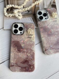 قاب موبایل آیفون ماربل زرشکی گل برجسته