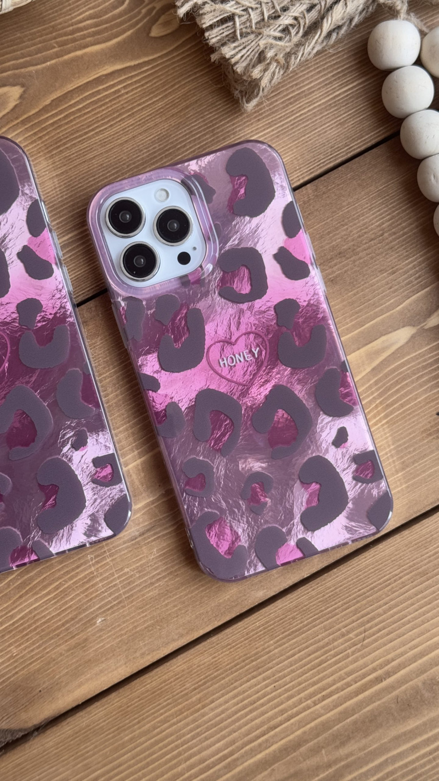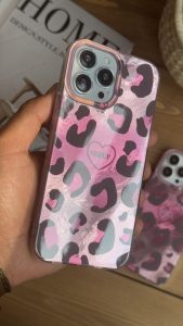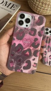 قاب موبایل آیفون پلنگی صورتی قلب هانی