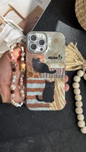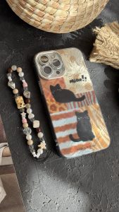 قاب موبایل ( آیفون ) پلنگی گربه سیاه میو + بندست