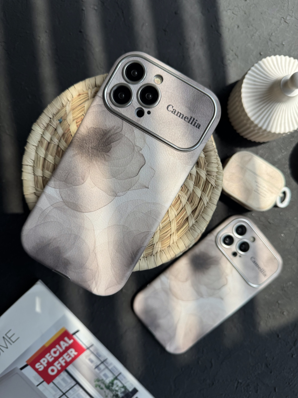 قاب موبایل آیفون کاملیا نسکافه ای محافظ لنزدار