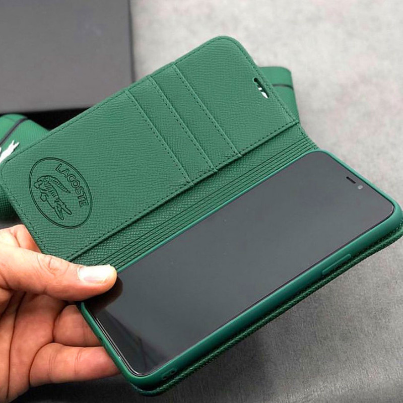 قاب موبایل آیفون کیف چرم لاگوست سبز کبریتی