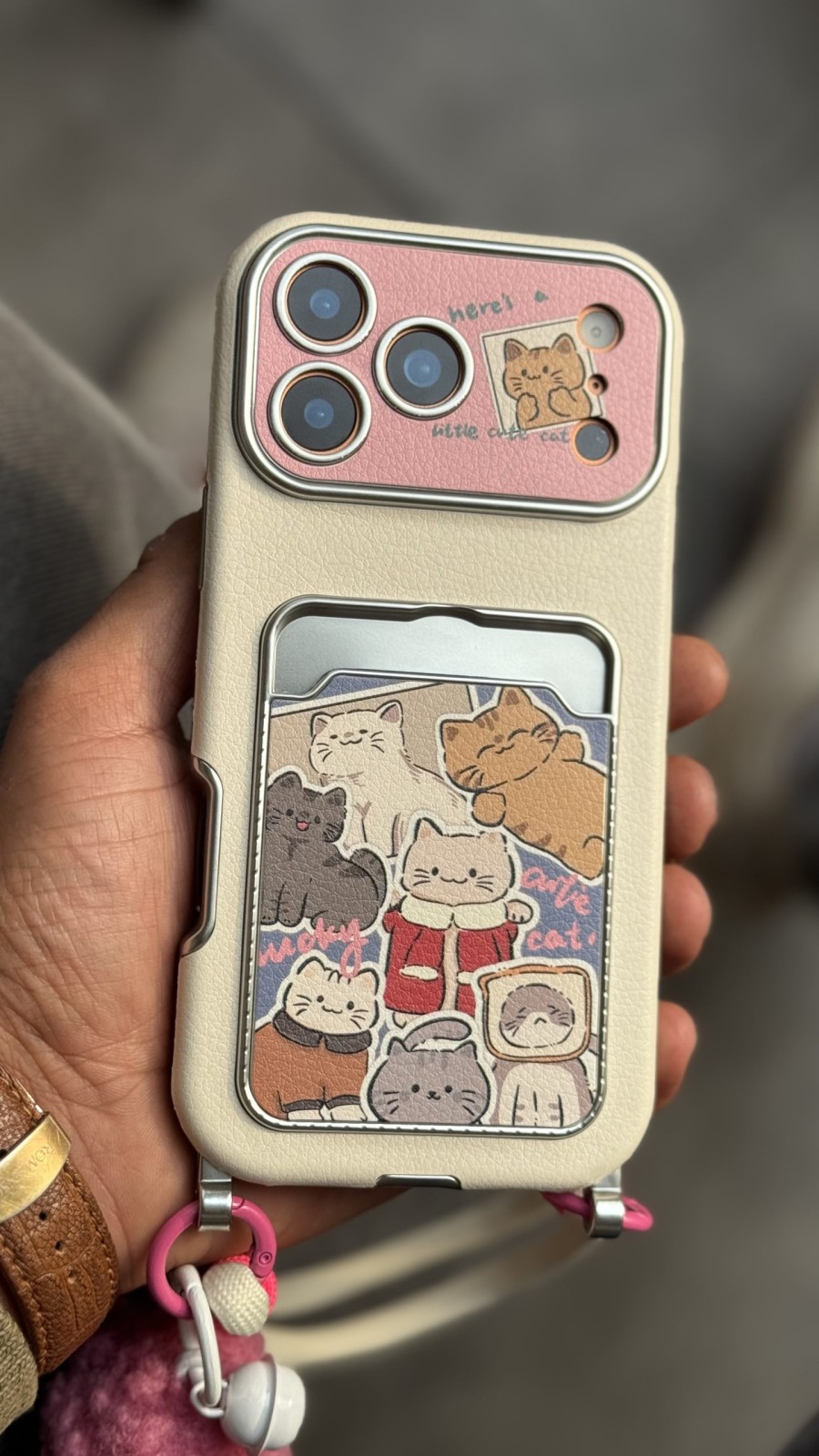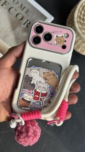 قاب موبایل آیفون گربه اسکاتیش جاکارتی دار + بند و آویزمنگوله ست
