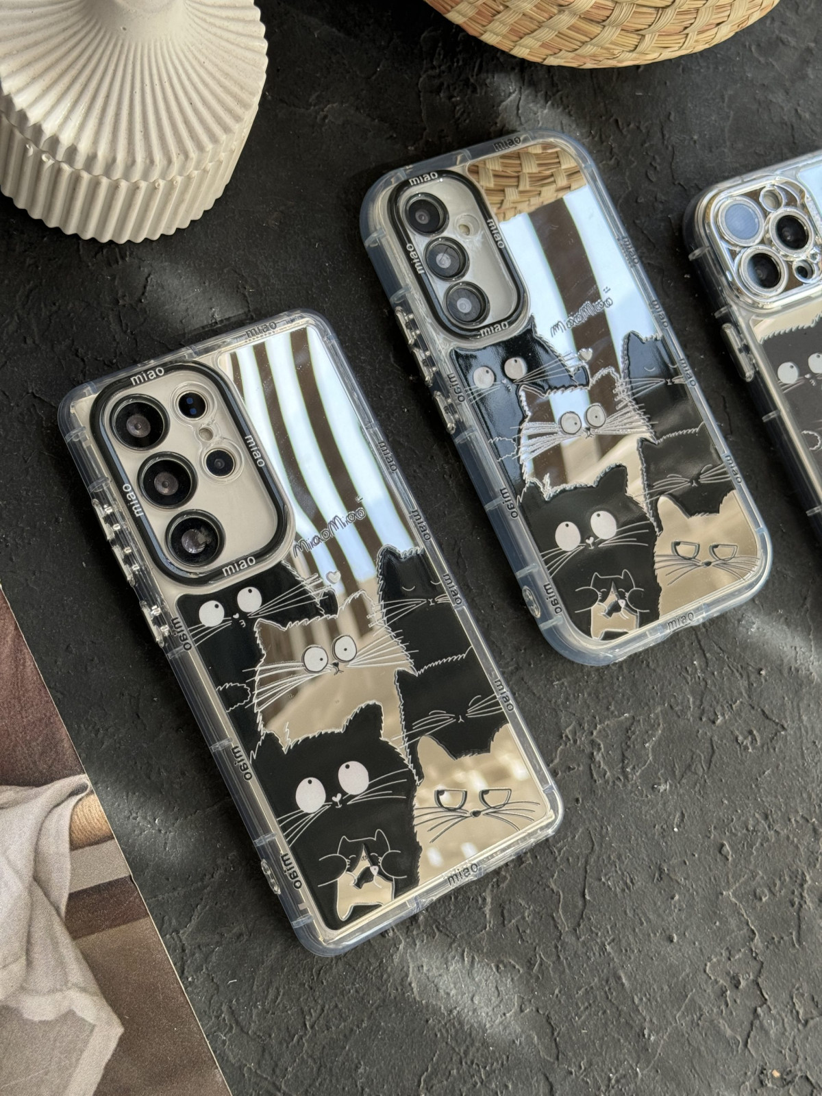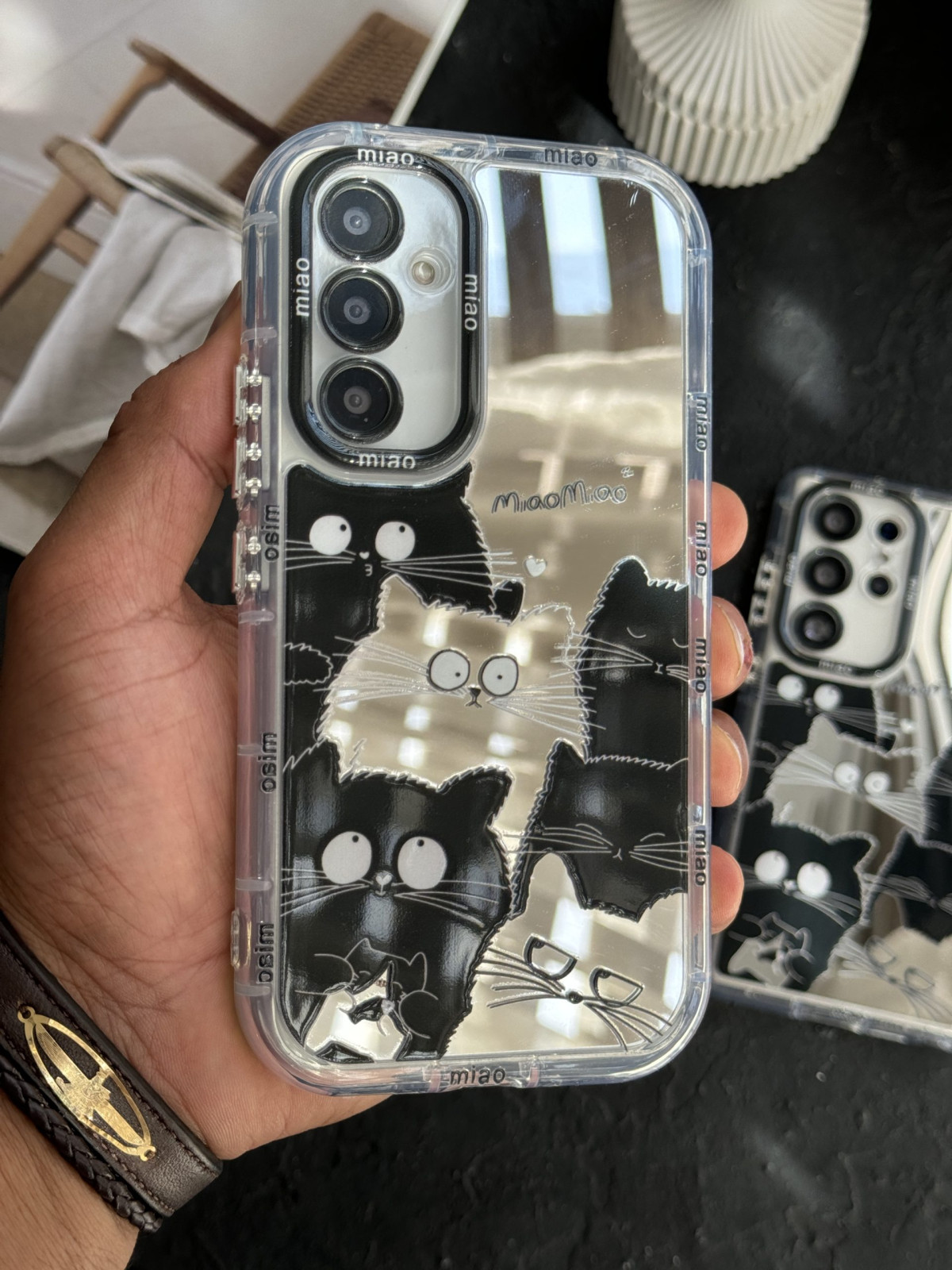 قاب موبایل سامسونگ گربه بلک اند وایت آیینه ای