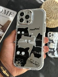 قاب موبایل آیفون گربه بلک اند وایت آیینه ای