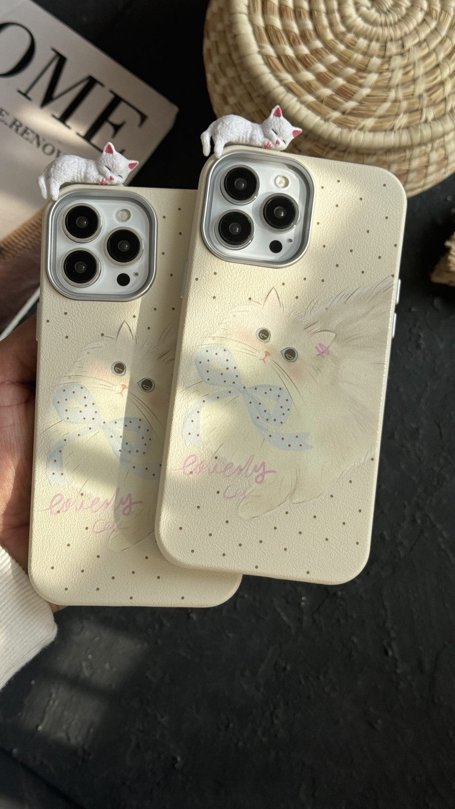 قاب موبایل آیفون گربه خوابالو خال خالی پاپیون