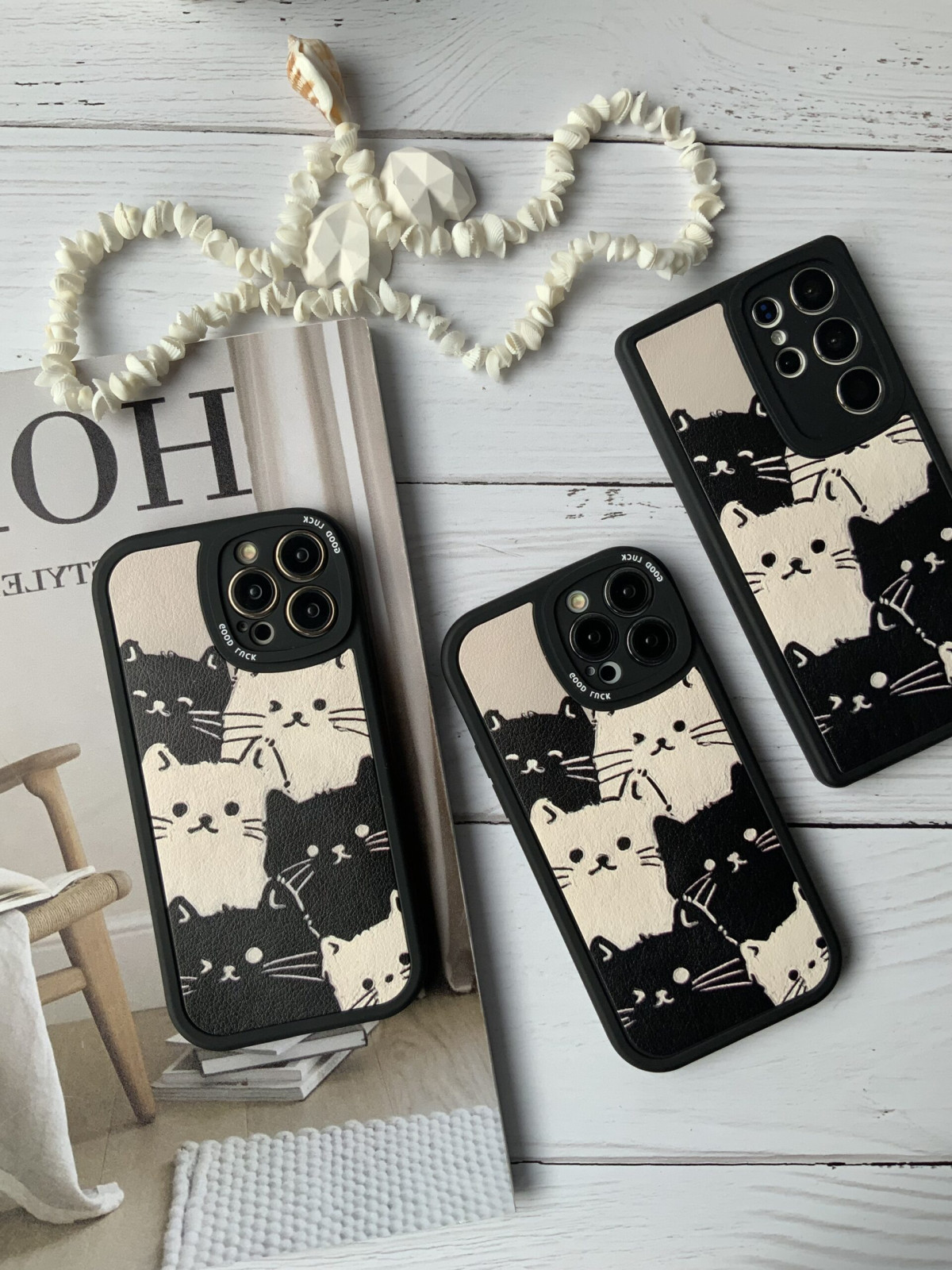 قاب موبایل آیفون گربه های کیوت سیاه و سفید محافظ لنزدار