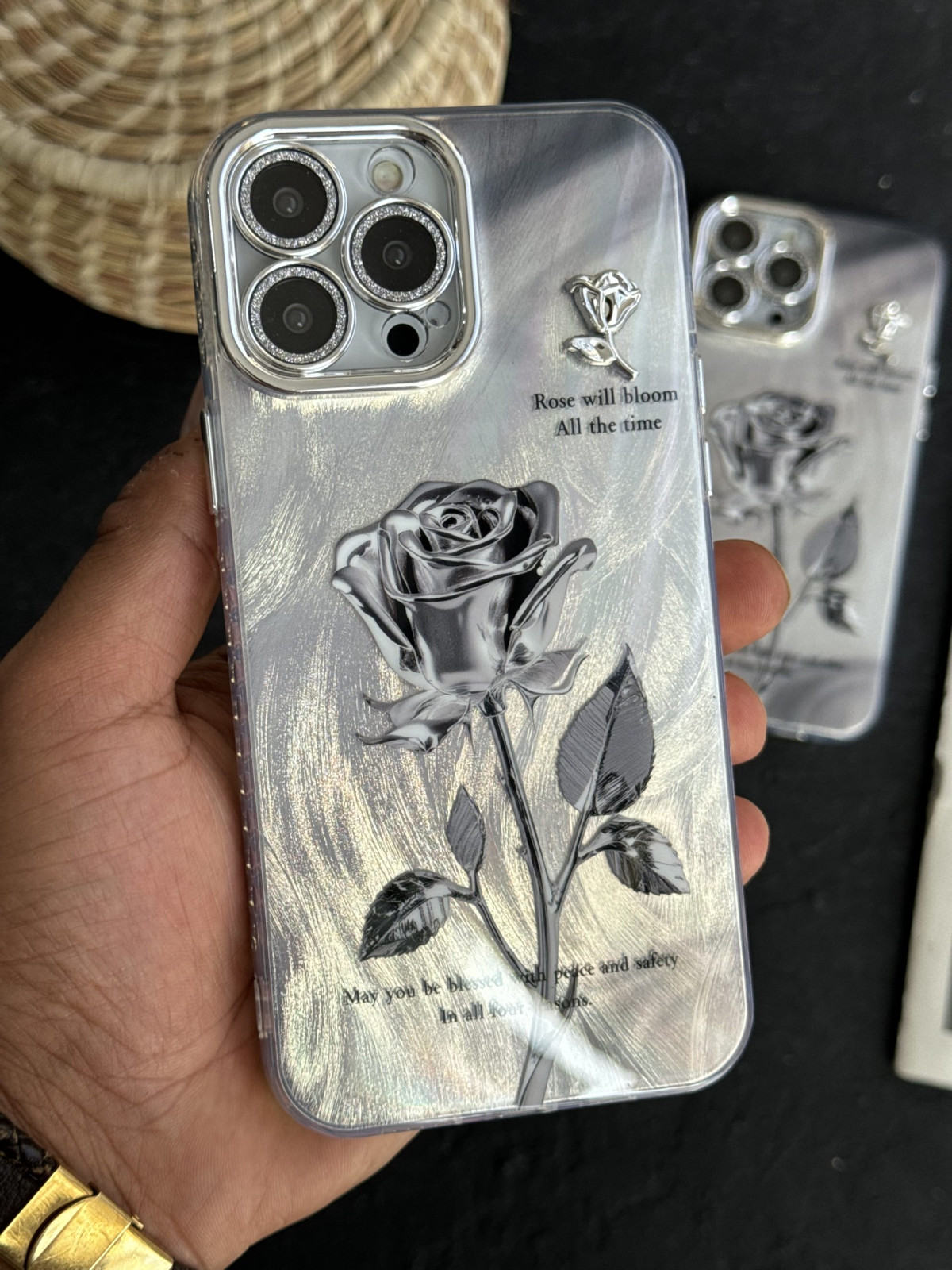 قاب موبایل آیفون گل رز سربی