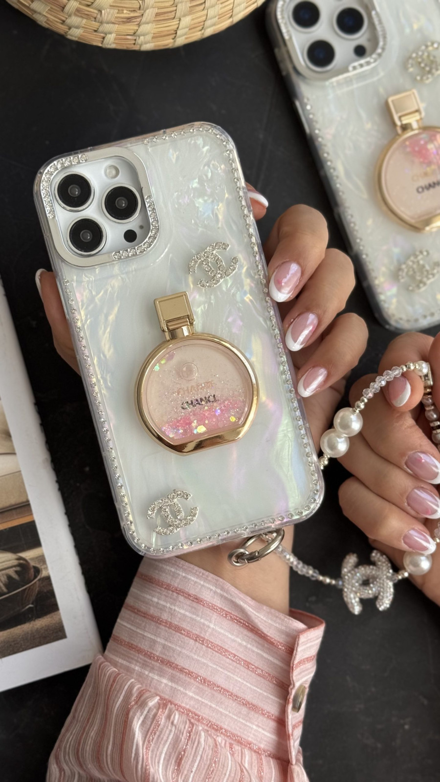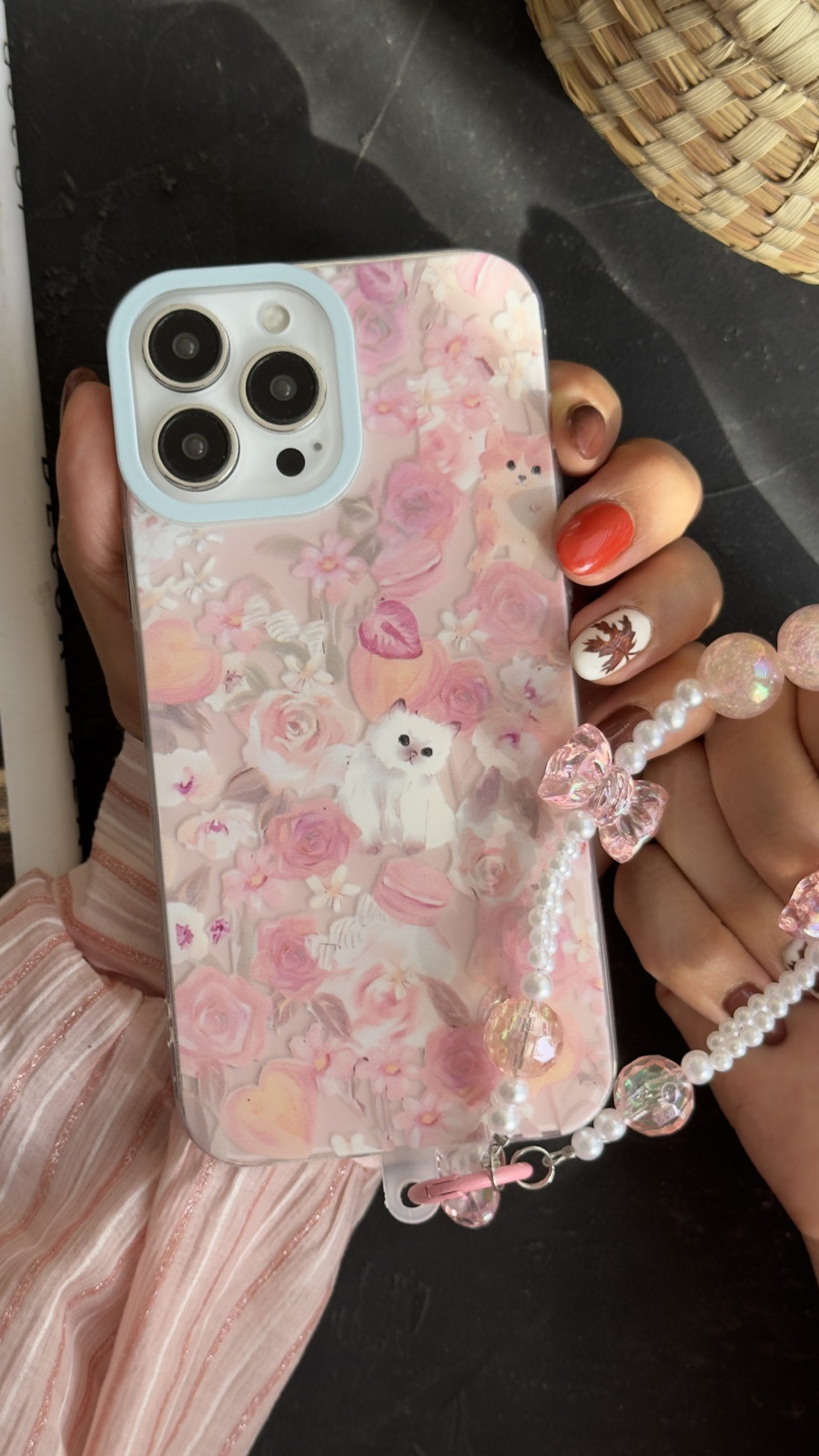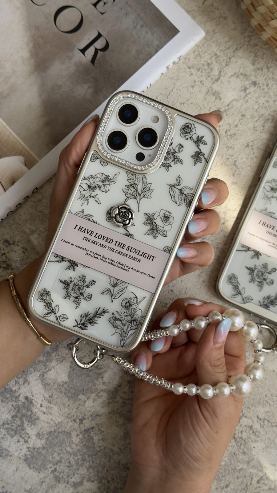 قاب موبایل آیفون گل فلاور کرم فندقی + بند چرمی ست