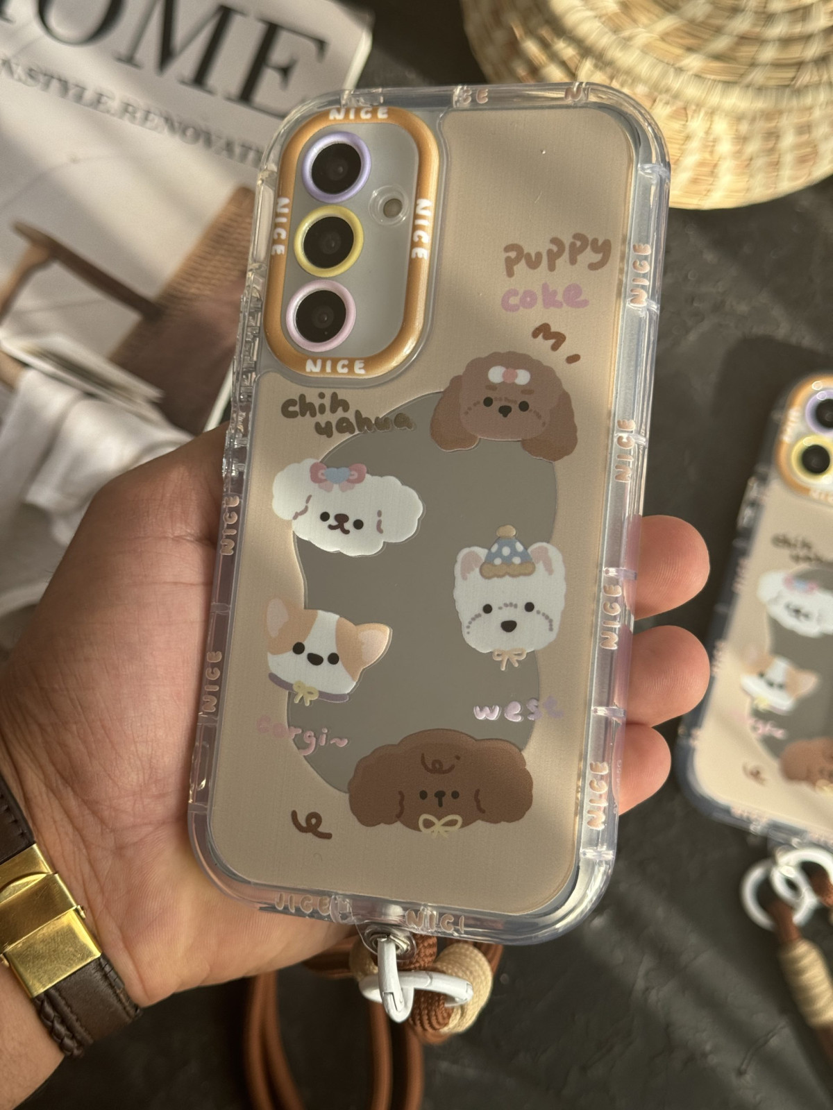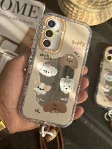 قاب موبایل سامسونگ سگ پاپی شکلاتی آیینه ای بند کوتاه