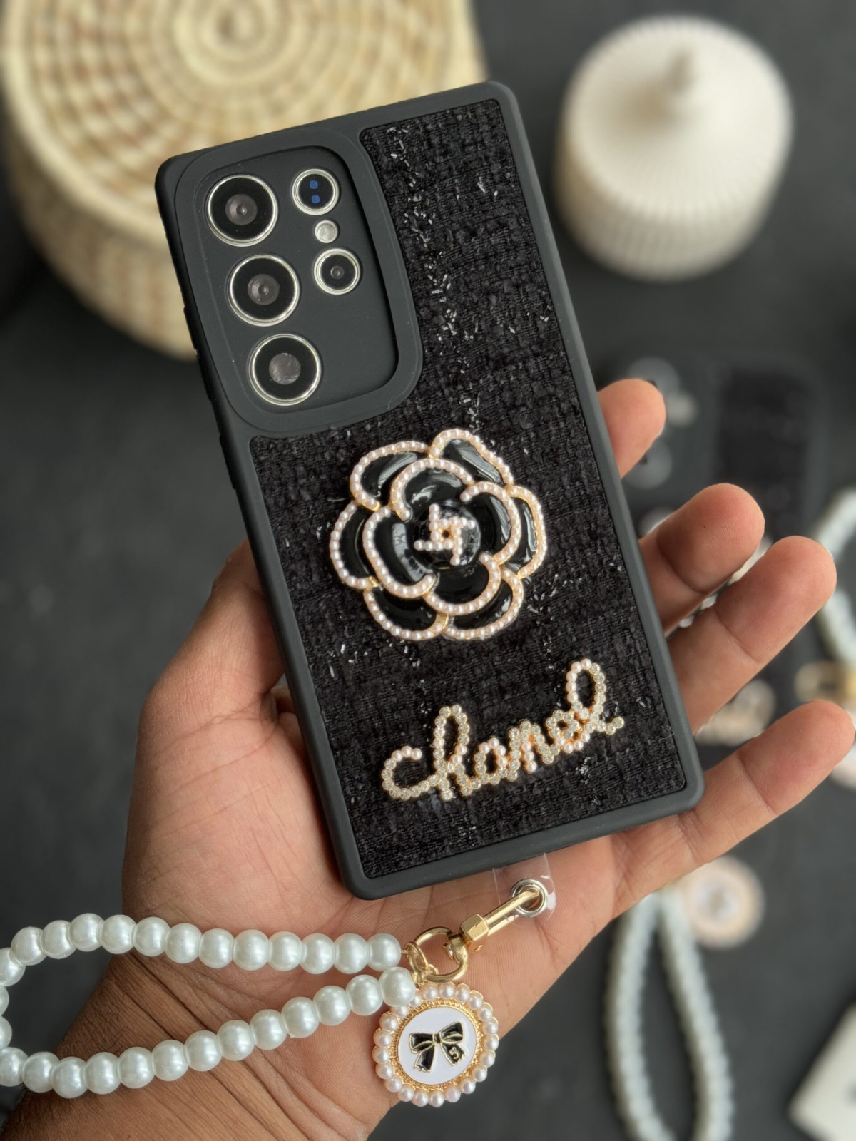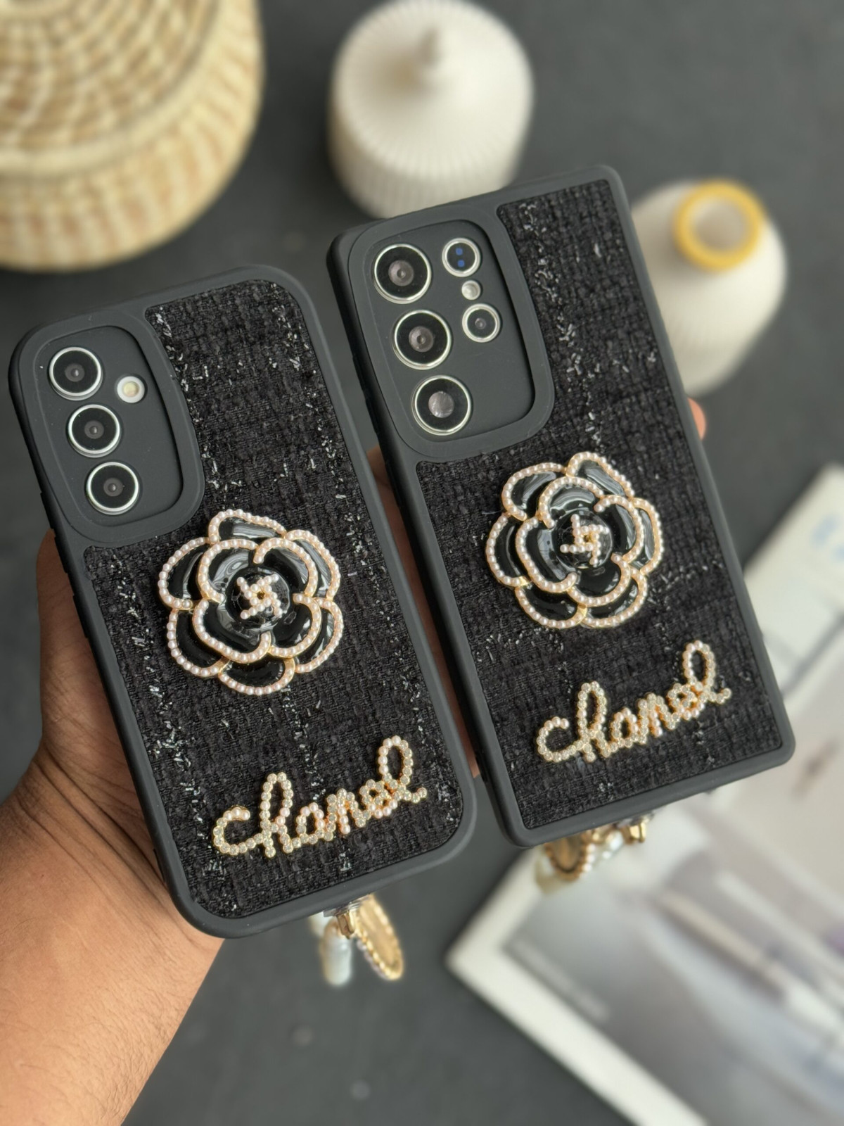 قاب موبایل سامسونگ شنل گل حصیری مشکی ( بدون بند )
