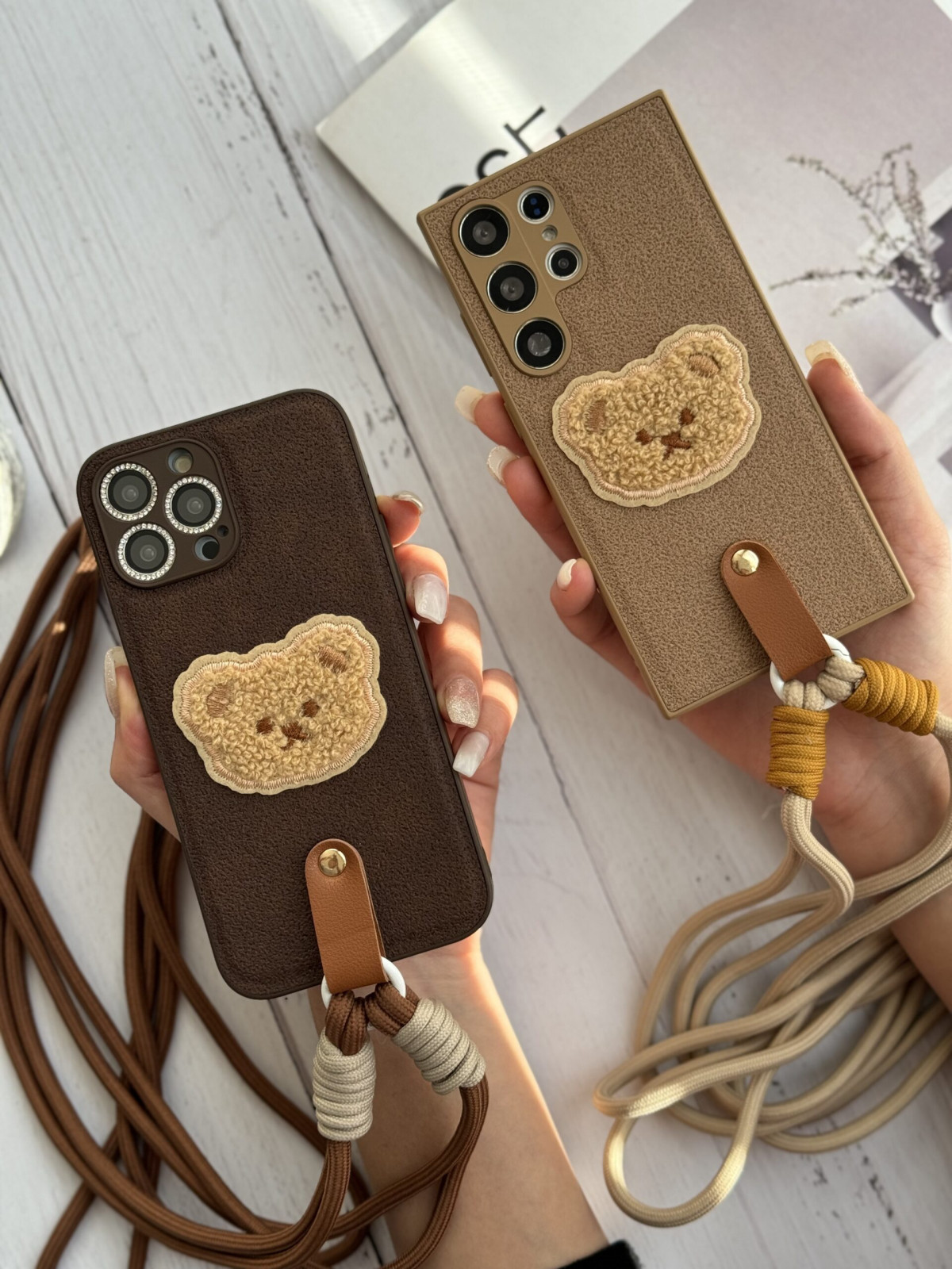 قاب موبایل ( آیفون – سامسونگ ) میکی اسکوییکی داگ آیینه ای نگین دار + بندست