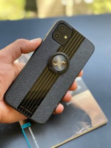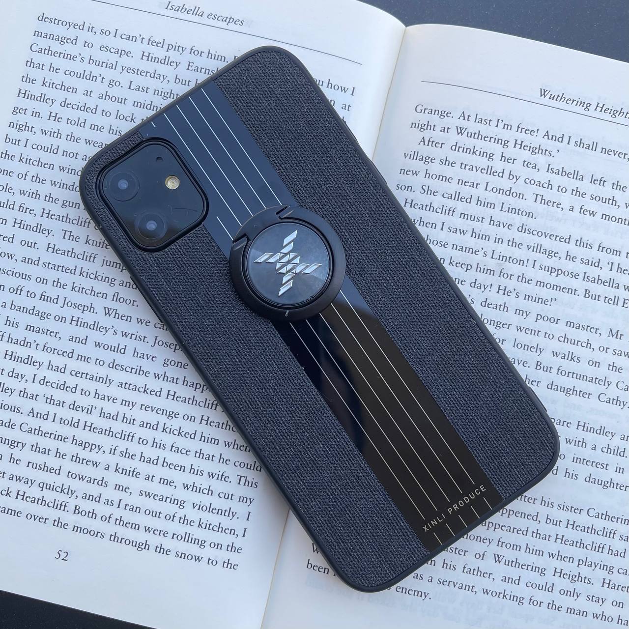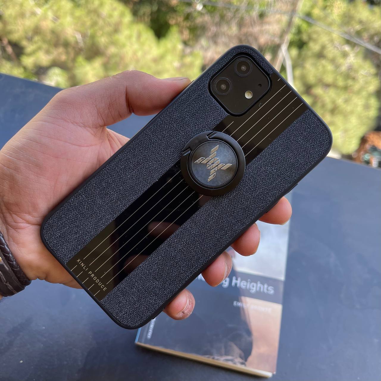 قاب موبایل آیفون پارچه و گلس حلقه دار مشکی ( 3007 )