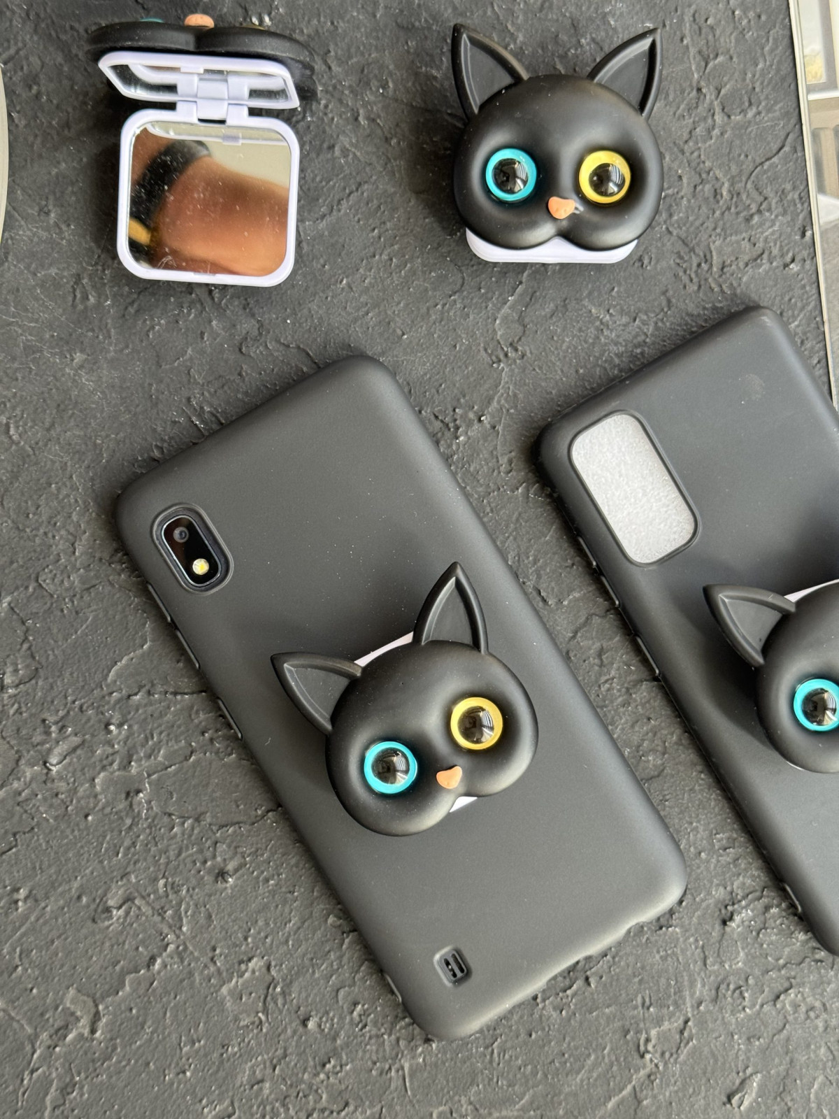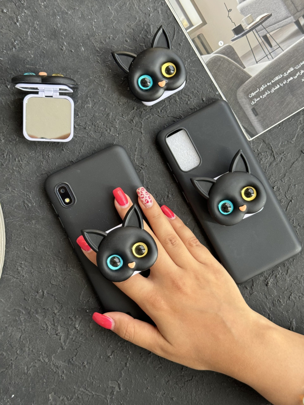 قاب موبایل سامسونگ گربه سیاه پاپسوکت آیینه ای