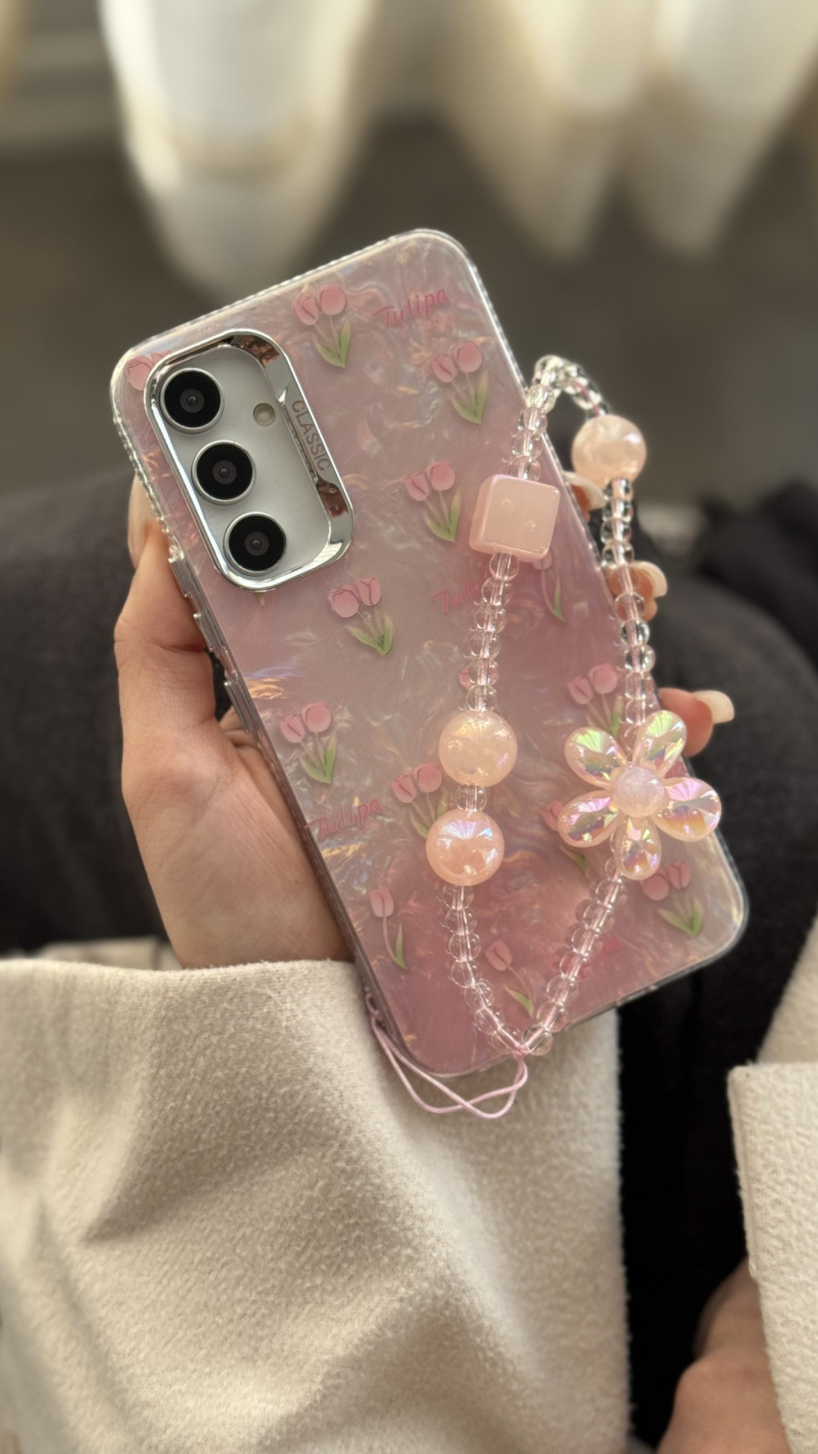 قاب موبایل ( سامسونگ ) گل لاله عباسی تولیپس صورتی + بندست