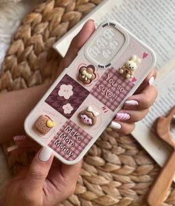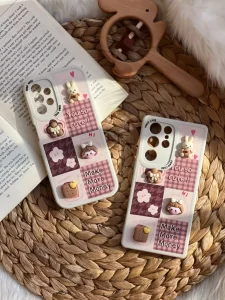 قاب موبایل شیائومی دختر و بیسکوئیت برجسته قهوه ای کرم محافظ لنزدار