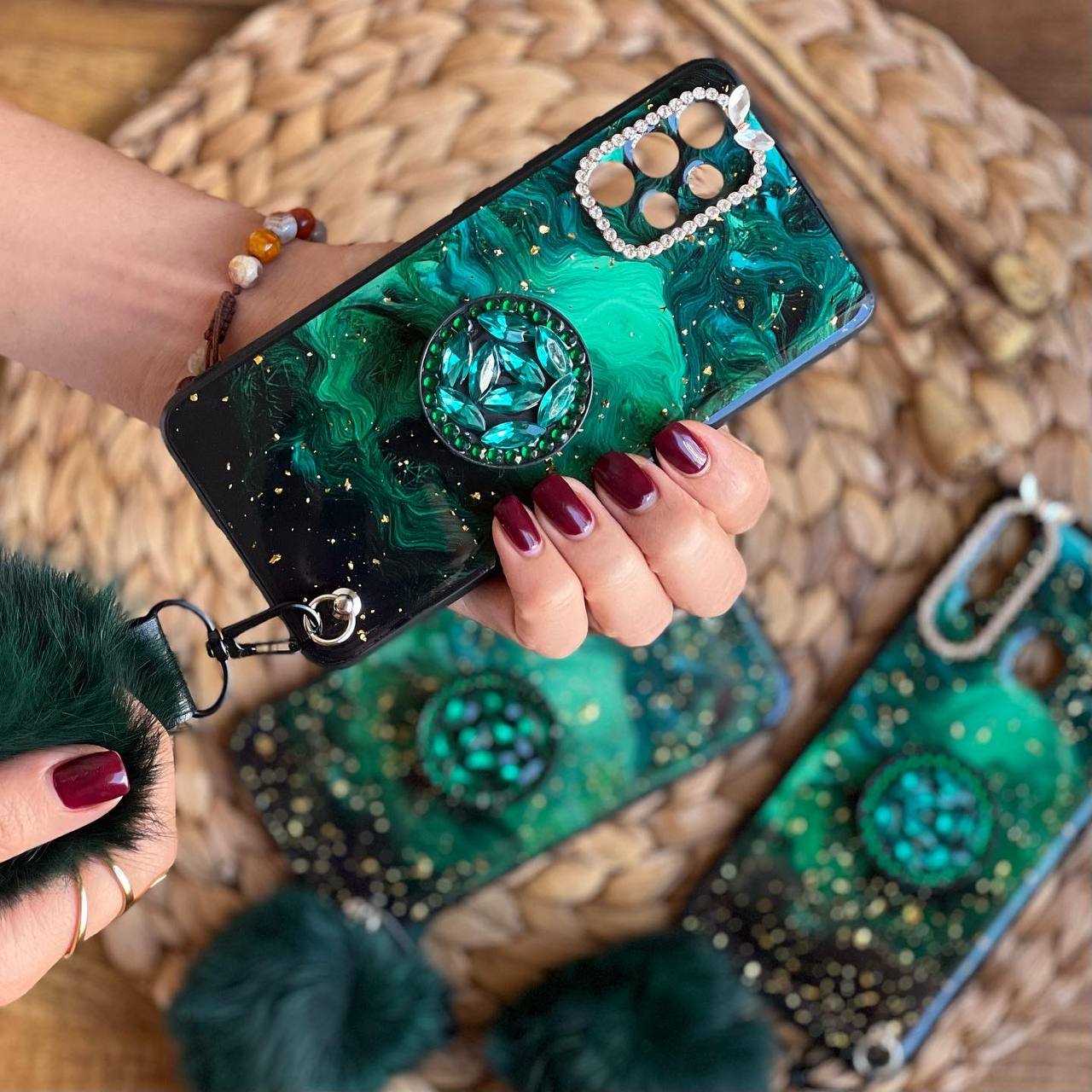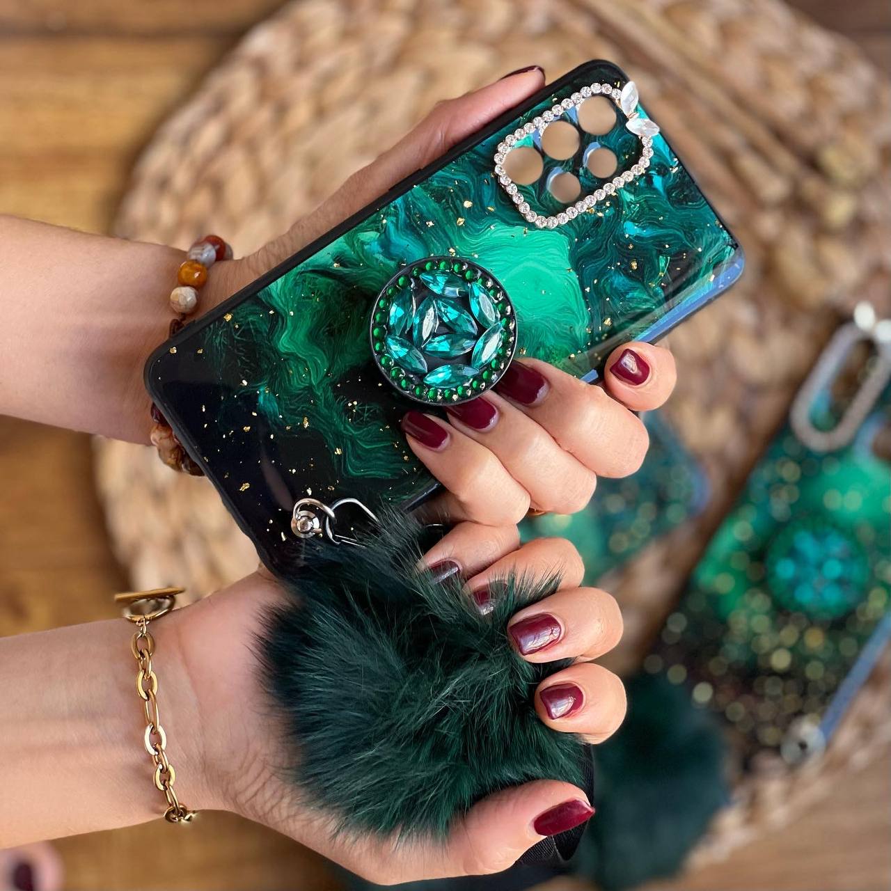 قاب موبایل شیائومی ماربل پام پام یشمی نگین دار + پام پام + پاپ سوکت