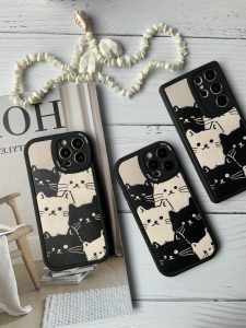 قاب موبایل شیائومی گربه های کیوت سیاه و سفید محافظ لنزدار