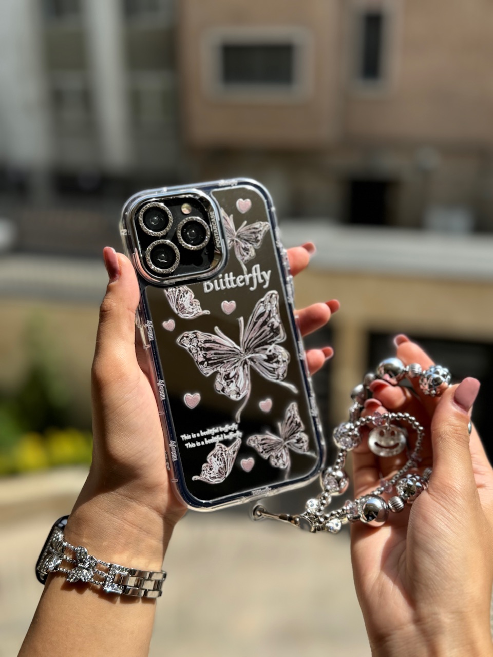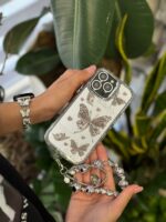 قاب پروانه آینه ای با آویز و محافظ لنز نگین دار (کدC1786)