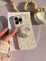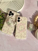 قاب موبایل آیفون دم روباهی پروانه گل سرخ + بندست پشمی