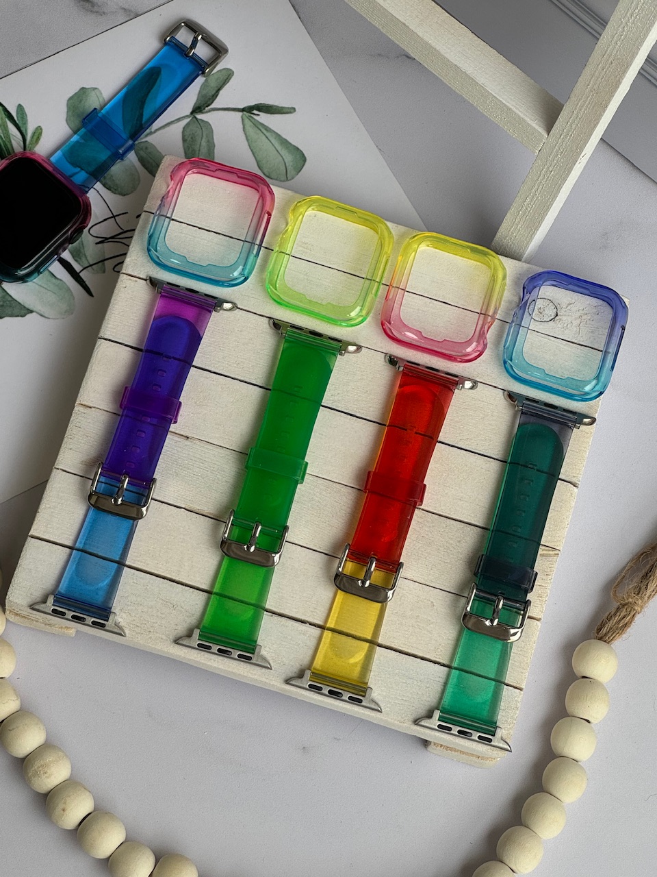 ست بند اپل واچ و گارد ژله ای رنگی (کدw5025)